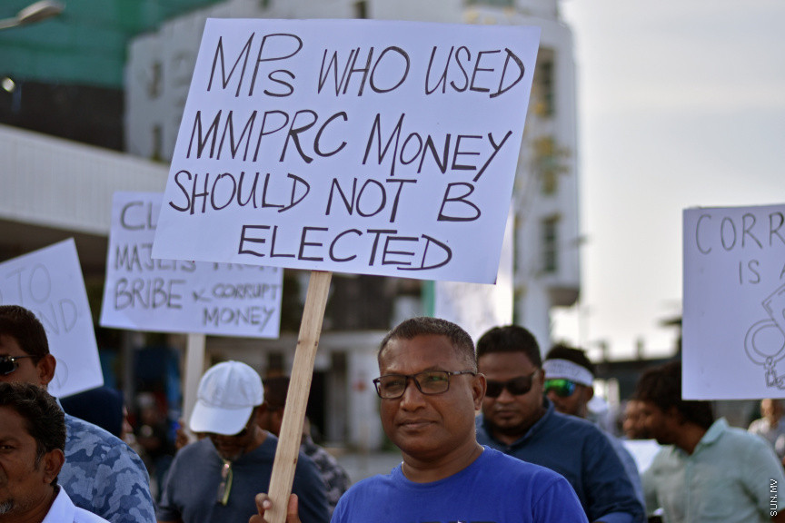 ކޮރަޕްޝަނާ ދެކޮޅަށް ބޭއްވި މުޒާހަރާގެ ތެރެއިން -- ސަން ފޮޓޯ/ މުހައްމަދު މުޒައްޔިން ނާޒިމް