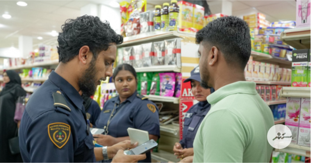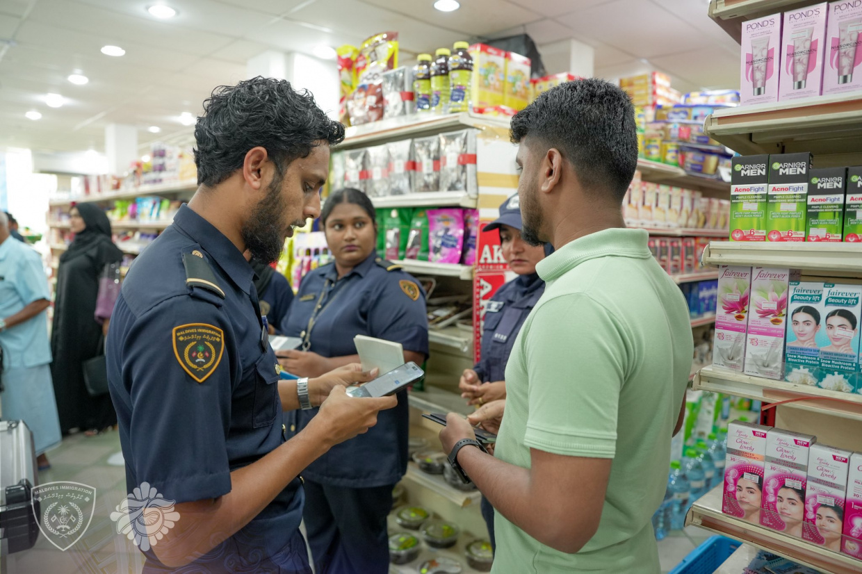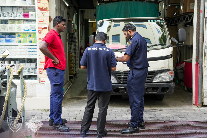 އިމިގްރޭޝަނުން ހިންގި ބޮޑު ރެއިޑުގައި ބިދޭސީއަކު ބަލައި ފާސްކުރަނީ ---- ފޮޓޯ/ އިމިގްރޭޝަން