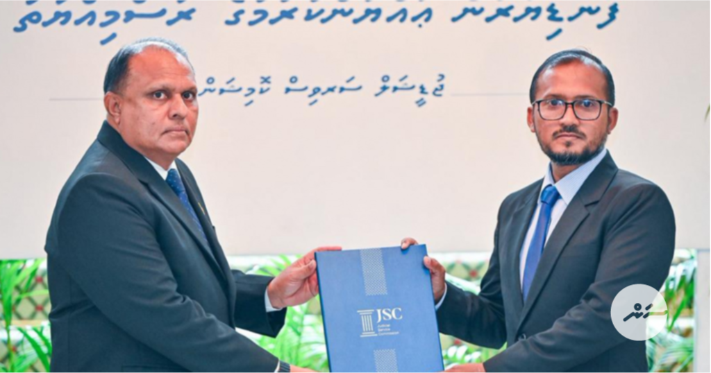 ސުޕްރީމް ކޯޓުގައި މިއަދު ބޭއްވި ރަސްމިއްޔާތެއްގައި, މާހިރު އެ މަގާމަށް އައްޔަން ކުރައްވައި ލިޔުން ހަވާލު ކޮށްދެއްވީ, ޖުޑީޝަލް ސާވިސް ކޮމިޝަން (ޖޭއެސްސީ)ގެ ރައީސް ހުސައިން ރިޒާ އާދަމެވެ.
