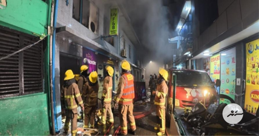 އެމްއެންޑީއެފުން ބުނީ، ބީއެޗްއެމްގެ ކުރިމަތީ ހުންނަ "ލިލީ އެފްއެންބީ ސަޕްލައި ބާޒާރު 1"ގައި އަލިފާން ރޯވިކަމުގެ މައުލޫމާތު ލިބުނީ ރޭ ދަންވަރު 1:00 އެހާކަންހާއިރު ކަމަށެވެ.