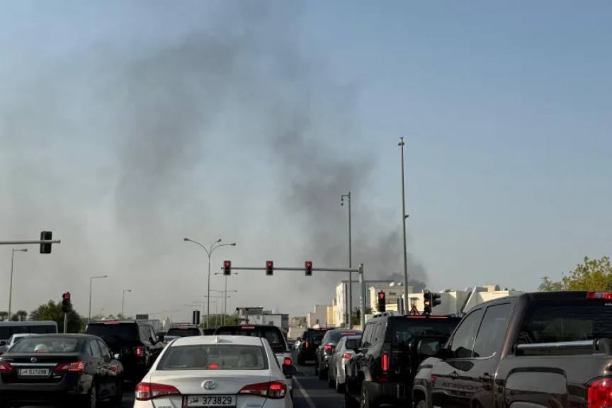 އިސްރާއީލުން ގަތަރުގެ ދޯހާއަށް ދިން ހަމަލާގައި އެ ސަރަހައްދުން ދުން އަރަނީ. ފޮޓޯ/ރޮއިޓާސް