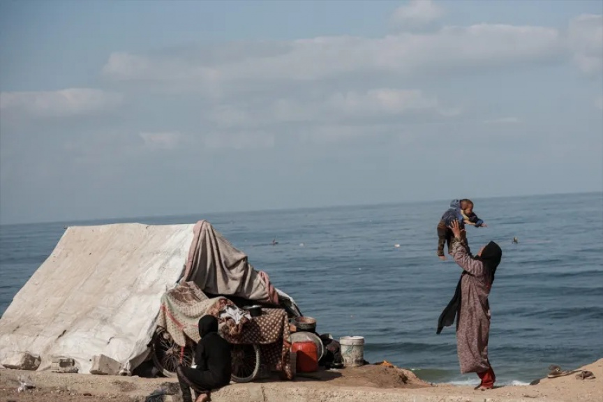 ޣައްޒާގެ މެދުތެރޭގައި ހުންނަ ނުސައިރަތު ރެފިއުޖީ ކޭމްޕްގައި ދިިރުއުޅޭ ޣައްޒާ ބައެއް. ފޮޓޯ/އަނަދޮލު