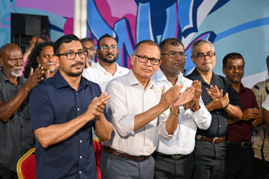 1 އޮކްޓޯބަރު 2025: ޕީއެންސީގެ ޖަލްސާގައި ސަރުކާރުގެ ވަޒީރުންނާއި، ޕީއެންސީ ޕީޖީ ލީޑަރު ފަލާހު -- ފޮޓޯ: ރައީސް އޮފީސް