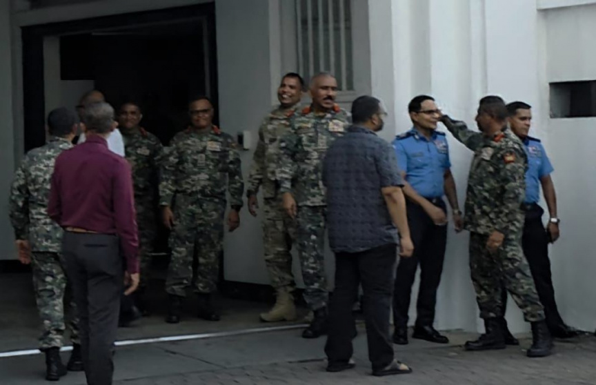 ޣައްސާނާއި އިހުސާންގެ އިތުރުން ފުލުހުންނާއި ސިފައިންގެ ބައެއް އިސްވެރިން ބަނޑޭރިކޮށީގެ ބޭރުގައި --- ފޮޓޯ: މިހާރު