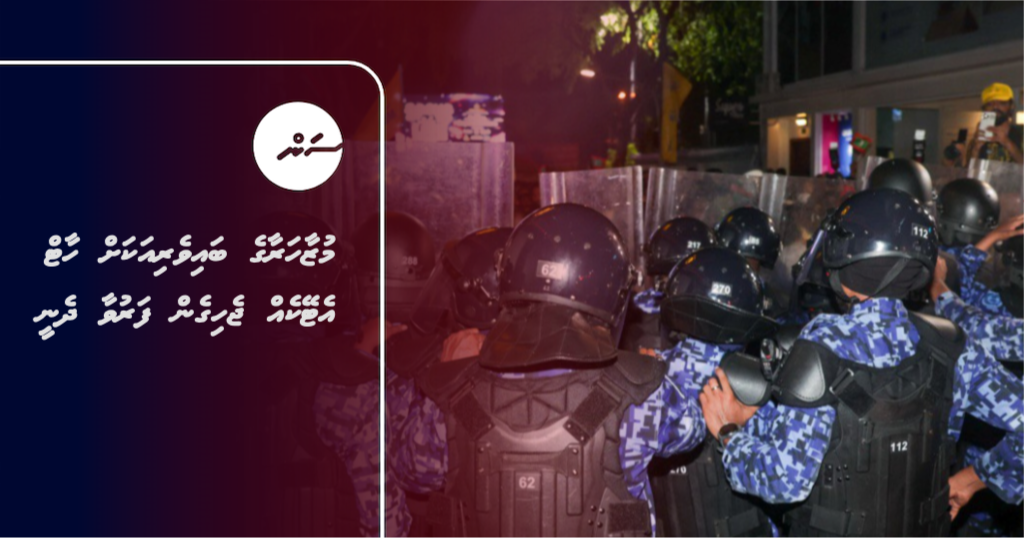އެތައް ސަތޭކަ ބަޔަކާއެކު, އާޓިފިޝަލް ބީޗުގައި މިރޭ 21:00 ކަންހާއިރު ފެށި އެއްވުމުގެ ބައިވެރިން މަޖީދީމަގުން ކުރިއަށް ދާން އުޅުމުން, ފުލުހުން ވަނީ އެކަމަށް ހުރަސް އަޅައިފައެވެ. ފުލުހުން ބުނިގޮތުގައި މުޒާހަރާގެ ބައިވެރިން ކުރިއަށް ދާން އުޅުނީ ހުއްދަ ދީފައިވާ ރޫޓުން ނޫން ކަމަށެވެ.