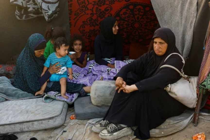 ޣައްޒާގެ ދެކުނަށް ދަތުރުކުރަމުން ދިޔަ ބަޔަކު ވަގުތީ ހިޔަލެއްގައި މަޑުކޮށްލައިގެން. ފޮޓޯ/ރޮއިޓާސް