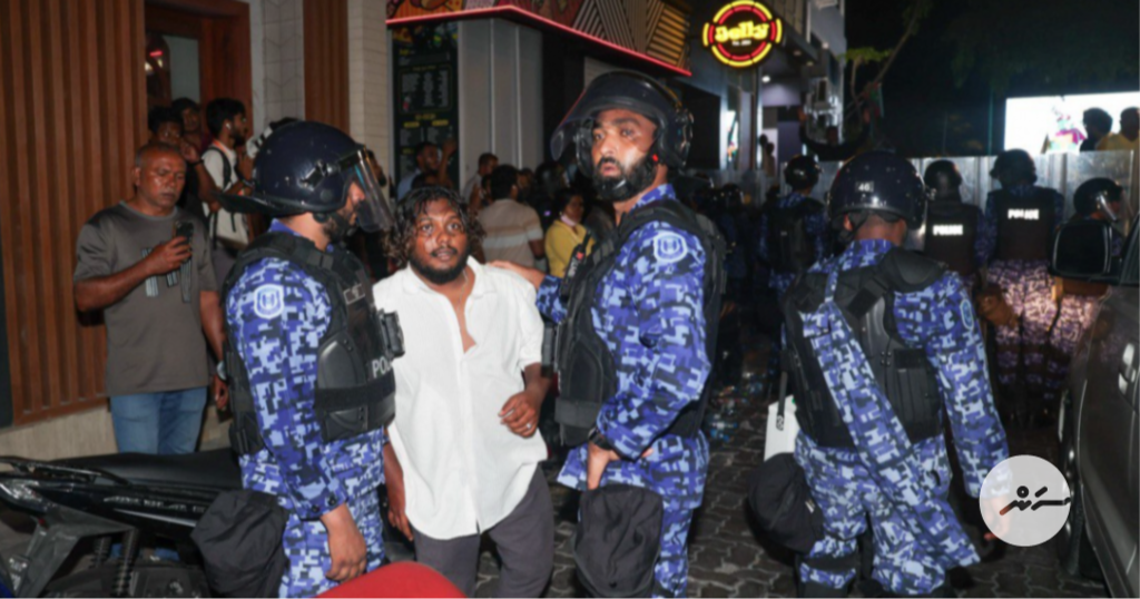 އެމްޑީޕީން ރޭ ބޭއްވި މުޒާހަރާގެ ބައިވެރިން ވަނީ އާޓިފިޝަލް ބީޗުން ނުކުމެ މަޖީދީ މަގަށް މިސްރާބު ޖަހައިފައެވެ. އެކަމަކު، ފުލުހުން ވަނީ މަޖީދީ މަގަށް ނުވަދެވޭ ގޮތަށް ބެރިކޭޑް ޖަހައި ބަންދުކޮށްފައެވެ. މުޒާހަރާ ކޮންޓްރޯލްކުރަން އުޅުމުގެ ތެރޭގައި ފުލުހުންނާއި މުޒާހަރާގެ ބައިވެރިންނާ ދެމެދު ހަމަނުޖެހުންތަކެއް ވެސް ހިނގިއެވެ.