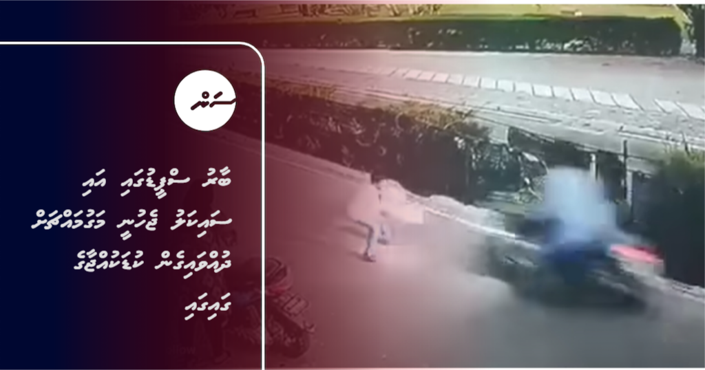 މި އެކްސިޑެންޓް ހިނގިގޮތުގެ ވީޑިއޯއެއް 'ފޭސްބުކް'ގައި އާންމުވެފައިވާއިރު ވީޑިއޯއިން ފެންނަނީ ކުޑަކުއްޖަކު ތިނަދޫގެ މަގެއް މައްޗަށް ދުއްވައިގެން ވަގުތު އެ މަގުން ބާރަށް ދުއްވާފައި އައި ސައިކަލަކުން އައިސް ކުއްޖާގެ ގައިގައި ޖެހޭ މަންޒަރެވެ.
