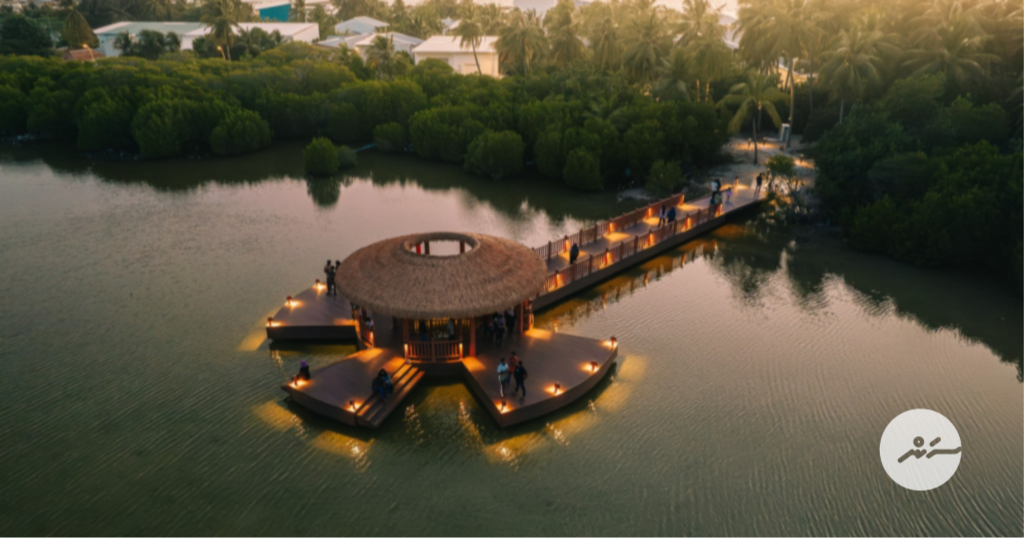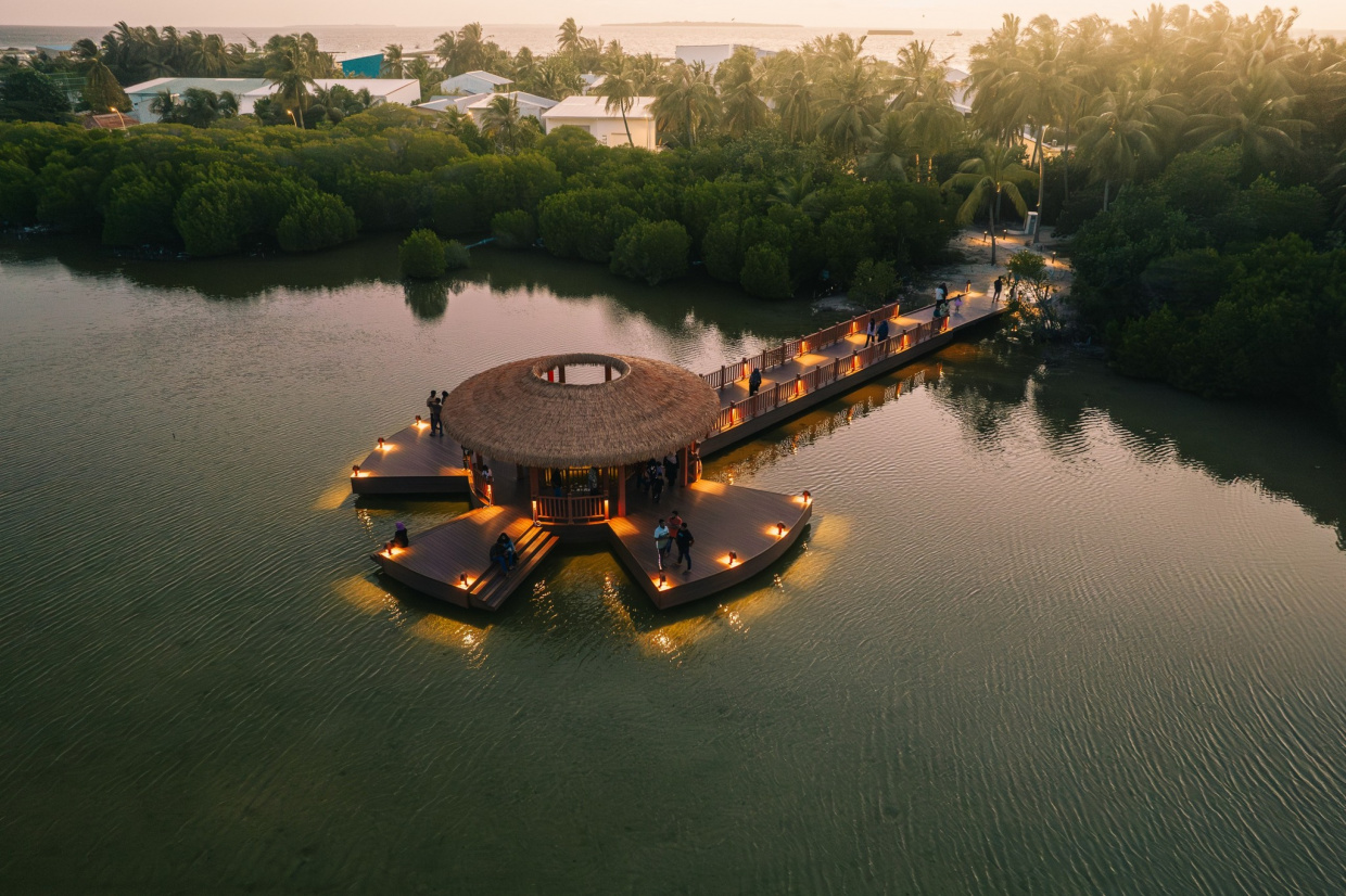 ތިން މިލިއަނަށް ވުރެ ގިނަ ރުފިޔާ ޚަރަދުކޮށްގެން ހެދި މަށި ކުޅި ޕްލެޓުފޯމަށް އަރައިގެން އަންނައިރު މަރުހަބާ ކިޔަނީ ވަށައިގެން ހުރި ބޮޑެތި ފެހި ގަސްތަކުންނެވެ. އެ ގަސްތަކުގެ ހިޔަނި އެޅި ފެންގަނޑުގެ ކުލަ އޮންނަނީ ވަޅު ފެހިކުލައެއްގައެވެ. އެ ރީތި މާހައުލު ފަޅުފިލުވައިދެނީ ކުޅީގައި އުޅޭ ބޭންގުތަކާއި އެހެން ދިރުންތަކެވެ.