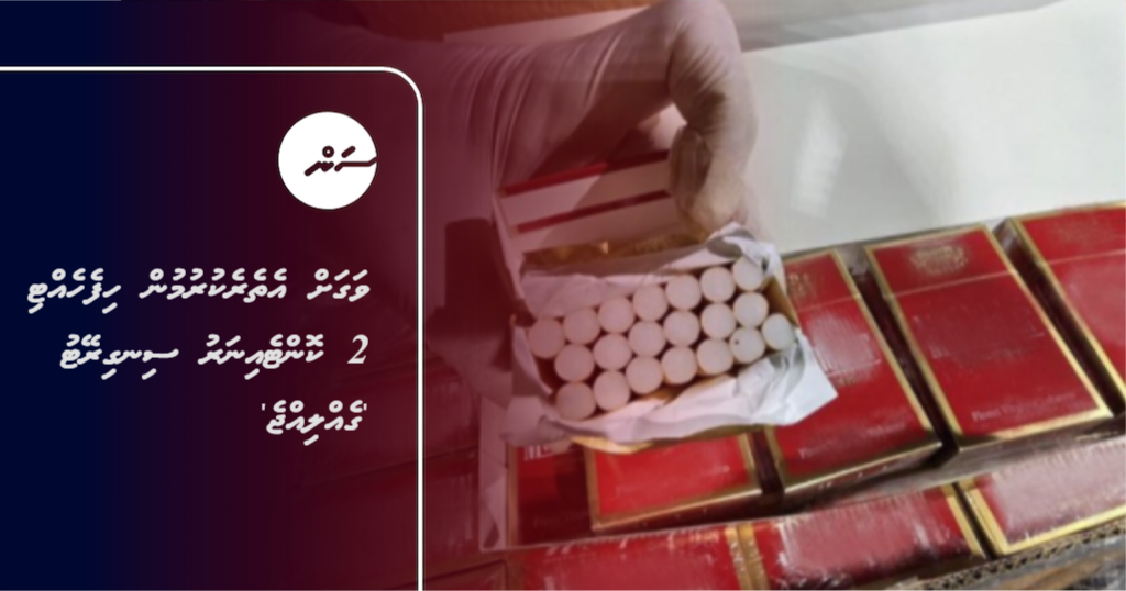 ސިނގިރޭޓާ ދުރުކުރަން ދުންފަތުގެ ބާވަތްތަކުން ނަގާ ޓެކްސް ބޮޑުކޮށް، ސިނގިރޭޓު ފޮއްޓެއްގެ އަގު 240 ރުފިޔާއަށް ޖެހުނު ފަހުން ރާއްޖޭގެ ބާޒާރުގައި ގިނަ އަދަދެއްގެ ވަގު ސިނގިރޭޓު އަންނަނީ ދައުރުކުރަމުންނެވެ. އެ ފަދަ ޝިޕްމަންޓުތައް ދޭތެރެއަކުން އަތުލައިގަނެއެވެ.