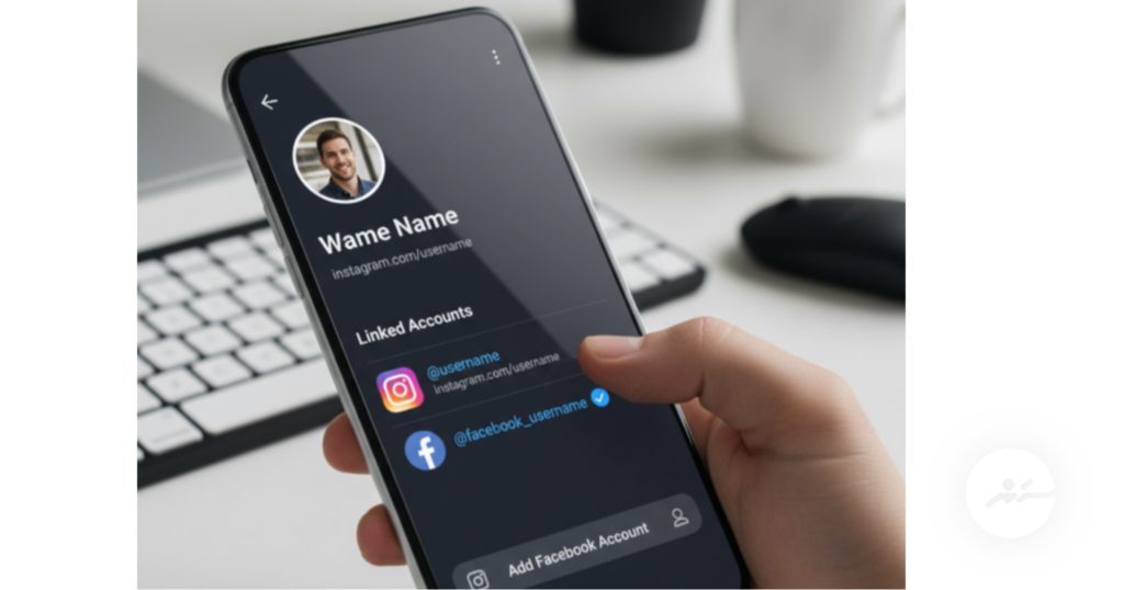 މިއީ އިހްތިޔާރީ ފީޗާއެކެވެ. އެހެންކަމުން، ބޭނުން ނޫންނަމަ ފޭސްބުކް ޕްރޮފައިލް ލިންކް ނުކޮށް ދޫކޮށްލުމުގެ ފުރުސަތު ލިބިގެންދާނެއެވެ. ލިންކް ކުރާނަމަ، މެޓާގެ އެކައުންޓްސް ސެންޓަރު މެދުވެރިކޮށް އެކައުންޓް ވެރިފައި ކުރެވޭނެއެވެ.