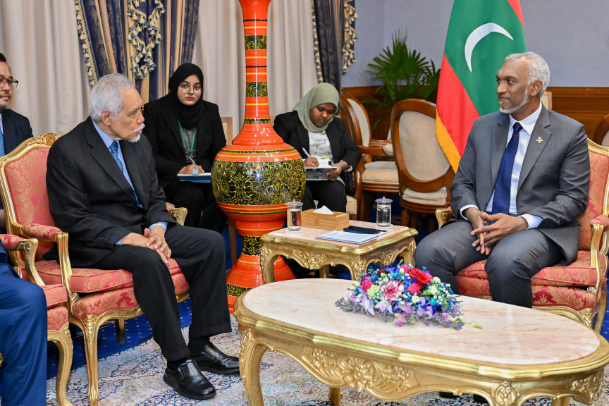 ރައީސް މުއިއްޒާއި އައިއައިޔޫއެމްގެ ޕްރޮފެސަރު ބައްދަލުކުރެއްވުން: ޕީއެޗްޑީ ޕްރޮގްރާމުތަކުގެ ދާއިރާއިން ގުޅުން ބަދަހިކުރުމަށް އައިއައިޔޫއެމްއާއެކު މަޝްވަރާކޮށްފި ---- ފޮޓޯ/ ރައީސް އޮފީސް