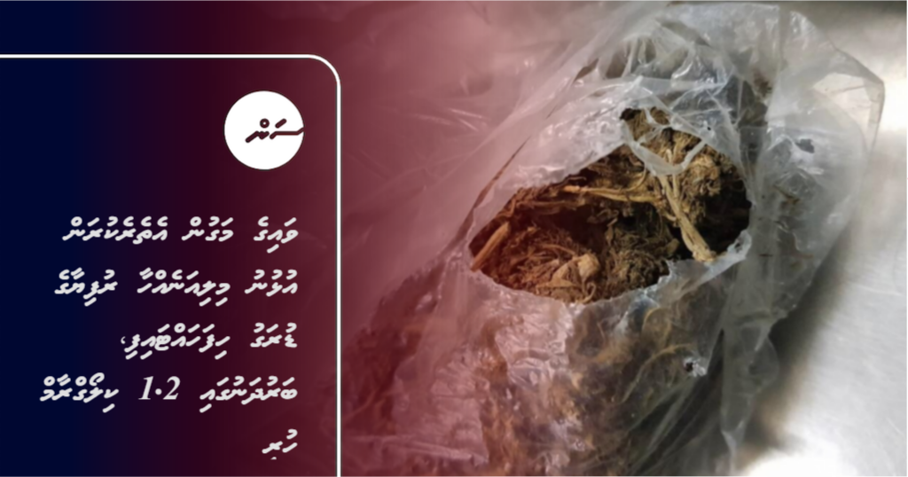 ކަސްޓަމްސްއިން ބުނީ، ރާއްޖެއަށް ވައިގެ މަގުން އެތެރެކުރަން މަސައްކަތްކުރި 1.2 ކިލޯގްރާމްގެ ކެނަބިސް ހިފެހެއްޓީ މިދިޔަ ހުކުރު ދުވަހުގެ ވަގުތެއްގައި ކަމަށެވެ.