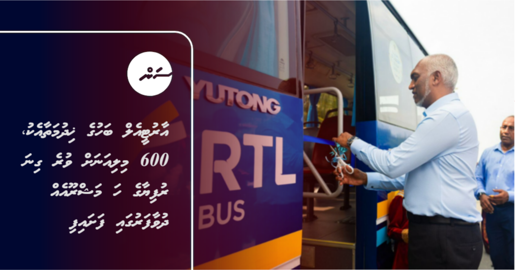 ރައީސް، ދުވާފަރުގައި ބަހުގެ ޚިދުމަތް ފަށްޓަވައިދެއްވަނީ: ބަހުގެ ޚިދުމަތާއެކު، 600 މިލިއަނަށް ވުރެ ގިނަ ރުފިޔާގެ ހަ މަޝްރޫއެއް ދުވާފަރުގައި މިއަދު ވަނީ ފަށާފައި -- ފޮޓޯ/ އެމްޓީސީސީ