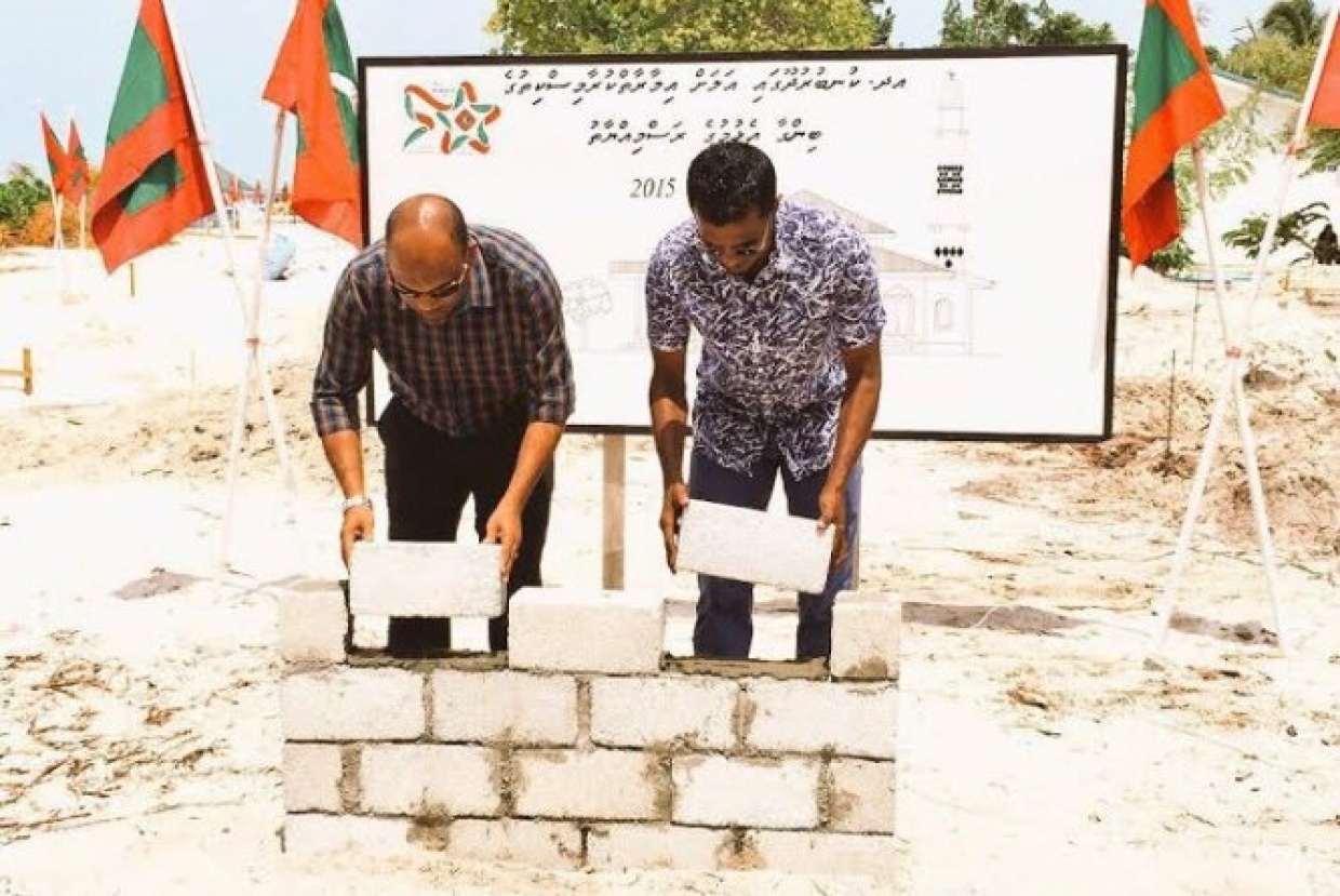 އދ. ކުނބުރުދޫގައި އިމާރާތްކުރާ އާ މިސްކިތުގެ ބިންގާއެޅުމުގެ ރަސްމިއްޔާތުގެ ތެރެއިން -- ސަން ފޮޓޯ: މުޙައްމަދު ނާޒިލް